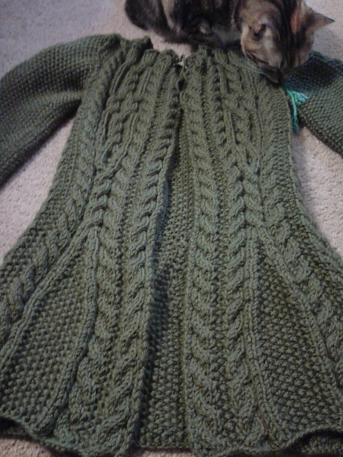 My January sweater is finally nearly done!!! I still need to add the button band and the collar, but I'm happy enough with it to move on to February.